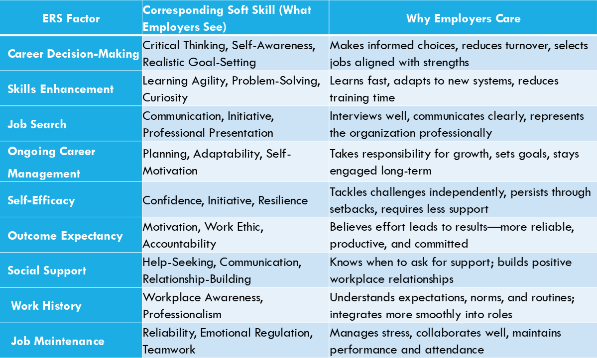 Leverage the power of the The Employment Readiness Scale™, an on line assessment, action plan and tracking tool by communicating